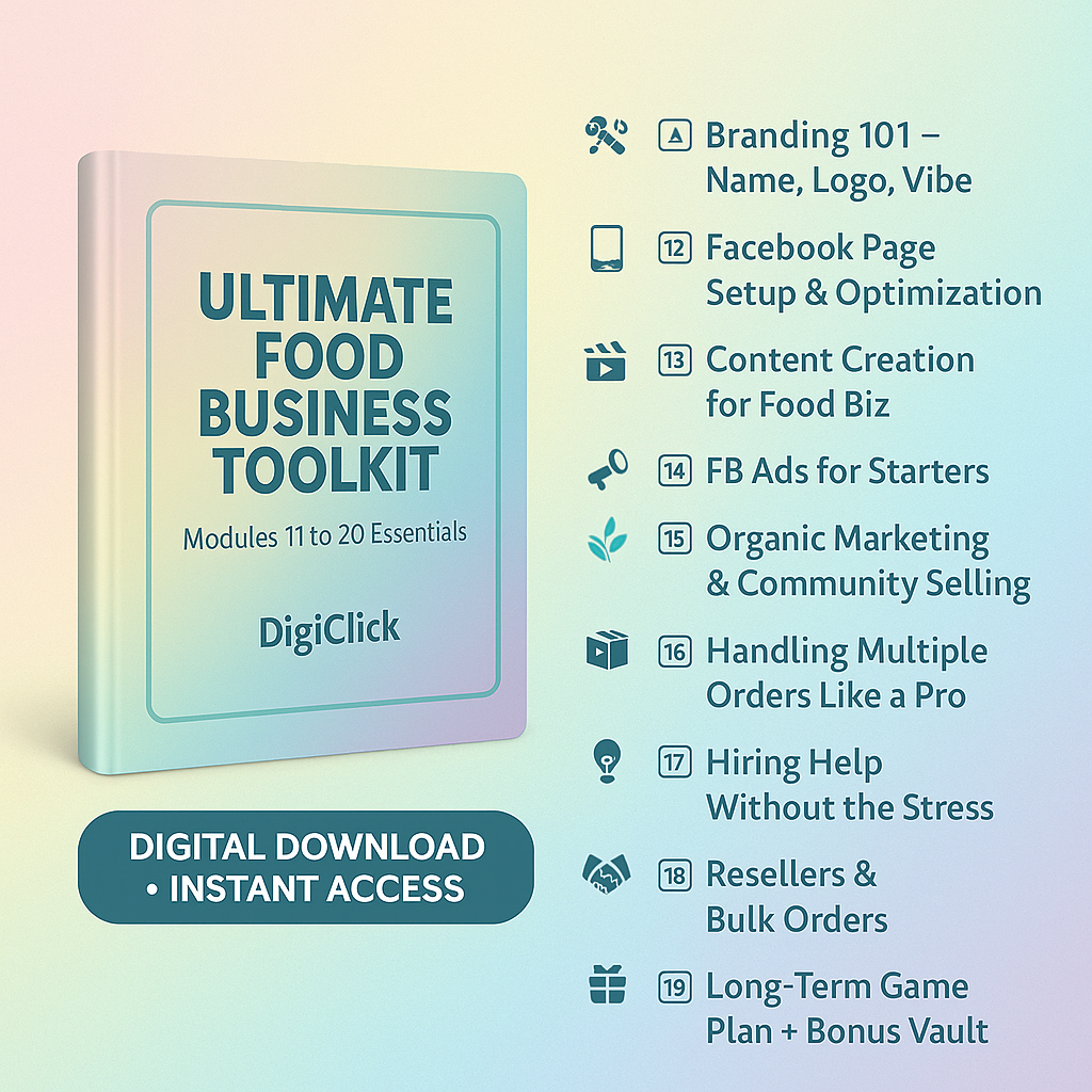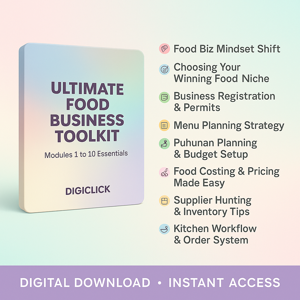 Looking to launch or grow your food business but don’t know where to start? The Ultimate Food Business Toolkit is your all-in-one digital guide designed to help foodpreneurs like you plan, manage, and market your business with ease.